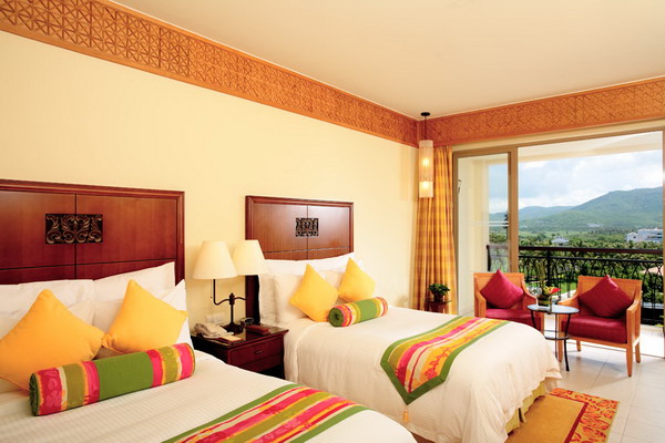 三亞萬豪度假酒店由世界知名公司W(wǎng)ilson & Associates設(shè)計(jì)。來自新加坡的設(shè)計(jì)師大膽自由的采用天然原石與暖色調(diào)木質(zhì)材料,結(jié)合當(dāng)?shù)孛匀说淖匀伙L(fēng)景和質(zhì)樸的風(fēng)土人情襯托出其自然、時(shí)尚的獨(dú)特風(fēng)格。酒店絕大部分客房均設(shè)有特大觀景陽臺(tái),將潔白細(xì)軟的海灘、景色怡人的園林、優(yōu)美的山光水色、高爾夫球場(chǎng)景致一覽無遺?头?jī)?nèi)部裝修舒適溫馨,從房間設(shè)施到小物品擺設(shè)都將感受到三亞萬豪度假酒店用“心”之處。三亞萬豪度假酒店引以為傲的水療中心“泉”座落在一片寧?kù)o的園林中。五座相對(duì)獨(dú)立的豪華水療閣,透過花園更能遠(yuǎn)眺美麗的南中國(guó)海景。精心準(zhǔn)備的療程項(xiàng)目包括美顏?zhàn)o(hù)理、身體理療、按摩護(hù)理和精選水療套裝,為您從內(nèi)至外打造煥然一新的感覺。美酒佳肴在三亞萬豪度假酒店更是隨處可見。萬豪軒中餐廳傳統(tǒng)精篆的中式佳肴;全新江戶銀日餐廳舒適柔和的色彩與傳統(tǒng)的日式裝修風(fēng)格相得益彰,寬敞的座位空間營(yíng)造舒適的就餐環(huán)境。伴隨著優(yōu)雅的日式音樂,品嘗具有現(xiàn)代感的日式美食,開放獨(dú)立的特色專區(qū)為您展示日式美食的制作過程;萬豪咖啡廳豐富的中西零點(diǎn)菜單和美味的自助餐;海韻風(fēng)情吧清涼飲料和迷人海景給予味覺和視覺無限享受。每間餐廳和酒吧都能滿足您挑剔的胃口。偏愛戶外的朋友也無需擔(dān)心,因?yàn)樗胁蛷d設(shè)有戶外雅座,讓您在享受美食的同時(shí)感受微微海風(fēng)的輕拂。得天獨(dú)厚的自然環(huán)境,令人垂涎的美酒佳肴,多姿多彩的娛樂活動(dòng),加上完善的會(huì)議設(shè)施,三亞萬豪度假酒店迅速成為舉辦各種活動(dòng)和商務(wù)會(huì)議的最佳場(chǎng)所。擁有11間會(huì)議室,總面積達(dá)1250平方米。無柱豪華宴會(huì)廳,可分隔成五部分,另外六間會(huì)議室滿足中小型商務(wù)會(huì)議需求。高素質(zhì)的會(huì)議統(tǒng)籌隊(duì)伍,熱情悉心的宴會(huì)服務(wù),為會(huì)議圓滿召開提供最佳保障。親臨亞龍灣領(lǐng)略“天下第一灣”真正魅力所在,親臨三亞萬豪度假酒店體驗(yàn)夢(mèng)寐以求的悠閑假期。