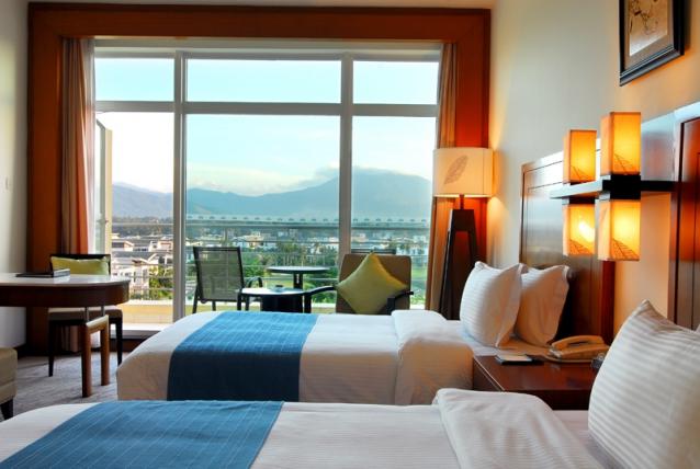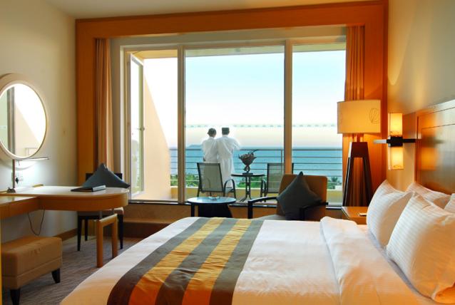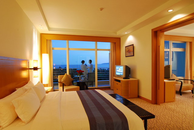 高級海景房,面積42平方米,樓層3-4層,有陽臺,180度海景,前面有遮擋物,大床(1.8*2米),雙床(1.2*2米),有浴缸,免費寬帶